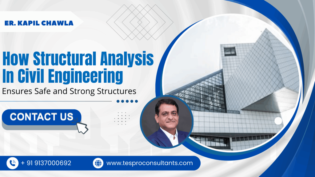 Every building we see around us gives people comfort, safety, and a long life. But safety happens only when engineers plan carefully and check the design well. Structural analysis in civil engineering makes sure every structure handles the load of people, furniture, wind, rain, and even earthquakes. It studies how different parts of a building behave under pressure. It also shows how materials like steel, concrete, and glass work together. Because of that, engineers design structures that stay strong for years. Without this process, even modern designs face sudden risks. So, structural analysis plays a very important role in construction. Importance of Structural Analysis in Building Safe Structures The importance of structural analysis in civil engineering can be seen in how it saves lives and protects investments. Every project by a trusted structural engineering companies passes through this step. Some key reasons are: If engineers ignore structural analysis, buildings look fine outside but hide dangers inside. That is why experts always treat it as the heart of safe construction. Key Factors Considered in Structural Analysis A skilled civil structural engineer knows that structural analysis in civil engineering is not about a single calculation. Instead, it covers several important factors that affect safety and performance. Some of the most common ones are: Because of these factors, structural analysis is not a one-step job. It is a mix of science, experience, and careful study. Real-Life Applications of Structural Analysis in Civil Engineering We can clearly see the value of analysis in real projects. A building health monitoring system and proper study help in many types of structures. The applications include: So, in real life, structural analysis touches every type of project. It is the shield that protects both structures and human lives. Expert Opinion Specialists in this field believe that structural analysis in civil engineering with structural health monitoring is now a must for all modern projects. They say advanced monitoring systems find small issues before they turn into big risks. This keeps structures safer and reduces repair costs in the future. How Structural Analysis Ensures Strong Structures At Tespro, we make strength and safety our first goal in every project. Structural analysis in civil engineering is the method that helps us deliver this promise. Tespro Consultants stand apart from other structural engineering companies because we bring together knowledge, technology, and commitment. Each civil structural engineer in our team works with the latest tools. This way, every structure is not only designed well but also protected for the future. Explore more: If planning to build your dream home?Check out Eternal Foundations—a helpful guide to building a strong, safe home that lasts for generations. 📩 For a free e-book, email me at kapil.chawla@tesproconsultants.com