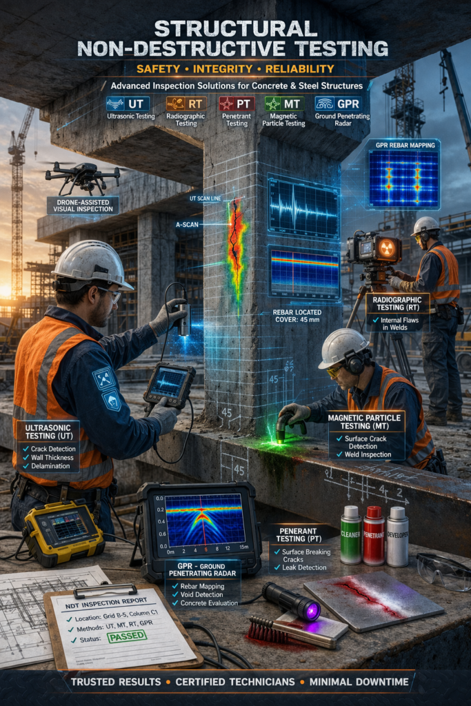 Professional structural engineering consultancy providing structural design, structural audit, Non Destructive Testing (NDT) Services and structural stability certification services across Asia and Africa.