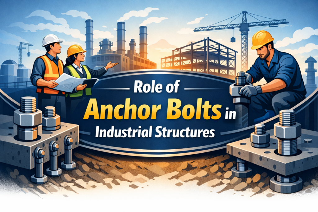 In industrial structures, anchor bolts for industrial projects in India are critical structural components that transfer loads safely from steel structures, machinery, and equipment into RCC foundations and slabs. Failures related to anchor bolts are often not due to steel strength alone, but due to incorrect grade selection, poor detailing, or improper installation.
