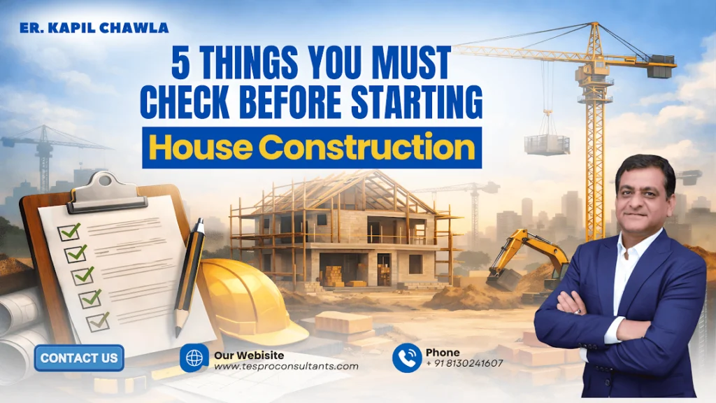 Before starting house construction, there are five important checks that every site must follow. These steps help in safe design, proper execution, and long-term structural strength. However, skipping even one step can create serious risks in future building performance.